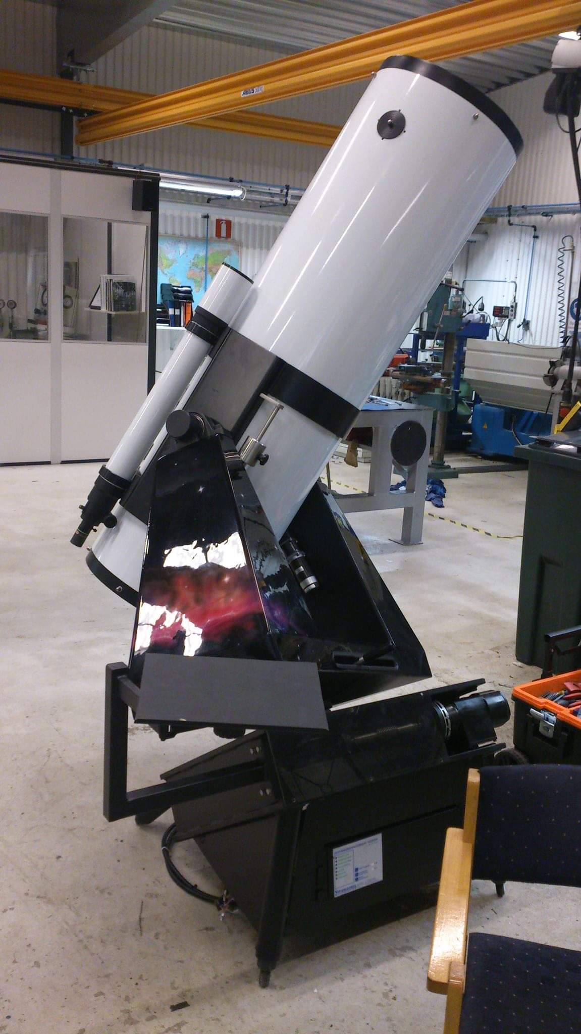 FB_IMG_1541188369076.jpg För 25 år sedan fick jag för mej att jag skulle bygga ett teleskop. Det blev ett Newton 16,25". Senaste flytten gick till södra Småland. Nu står det i en kupol men oanvänt. Några problem återstår att lösa och jag har tappat lite driv då jag bla varit sjuk..Nu tänkte ja...