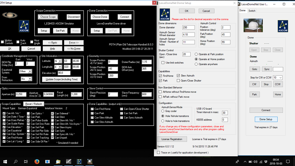- En torkarmotor står för drivningen. Det tar cirka en minut för kupolen att gå ett helt varv. Det sitter dessutom en laser på teleskopet. Den påverkar motorn som vrider kupolen några grader ungefär en gång i halvtimmen när jag fotar.