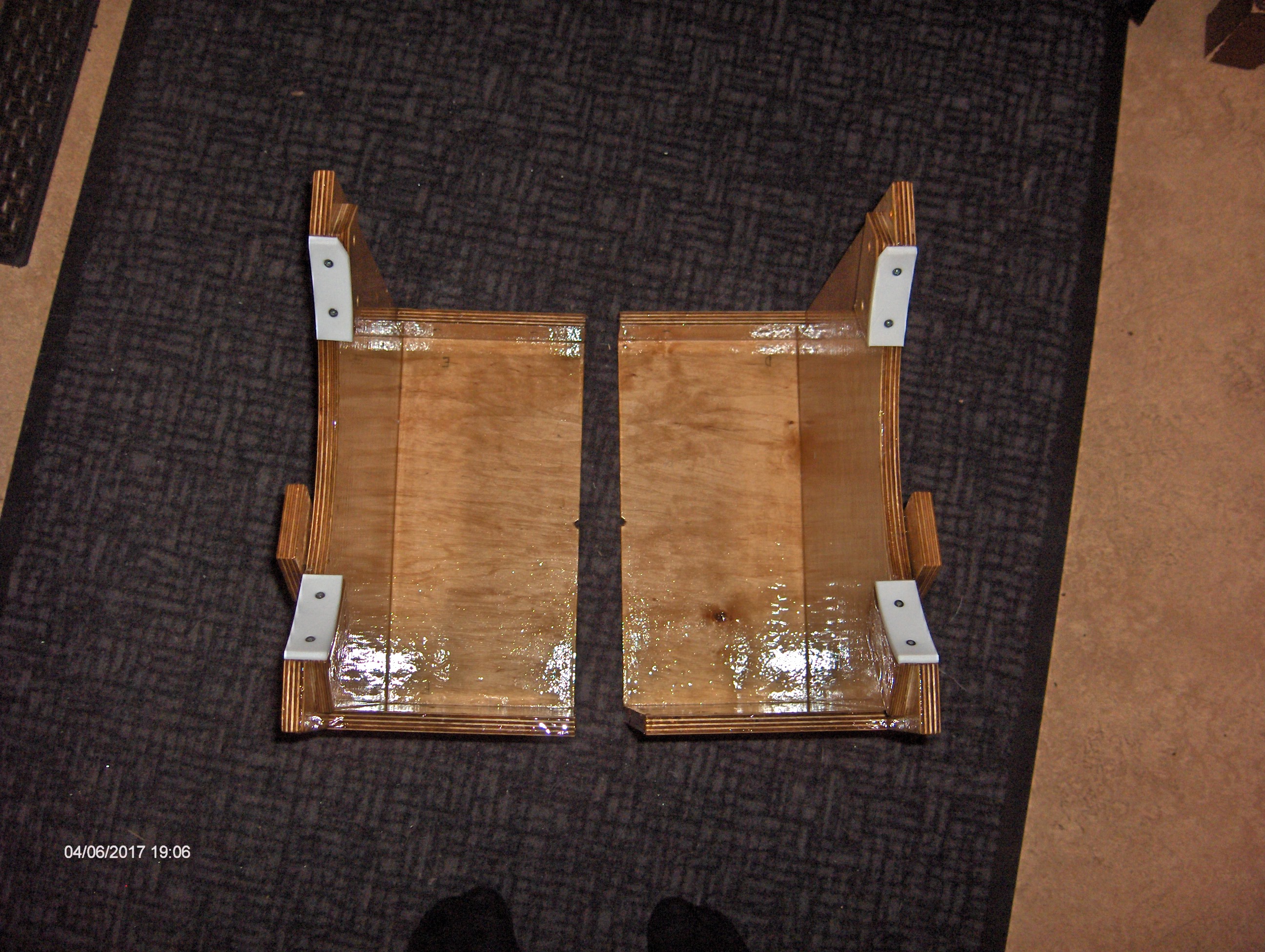 Bygget tog ett sort steg framåt i torsdags kväll! Nu är Dobben klar förutom torkning (plywooden har stått i ett kallgarage), lackning och applicering av teflonklossar.