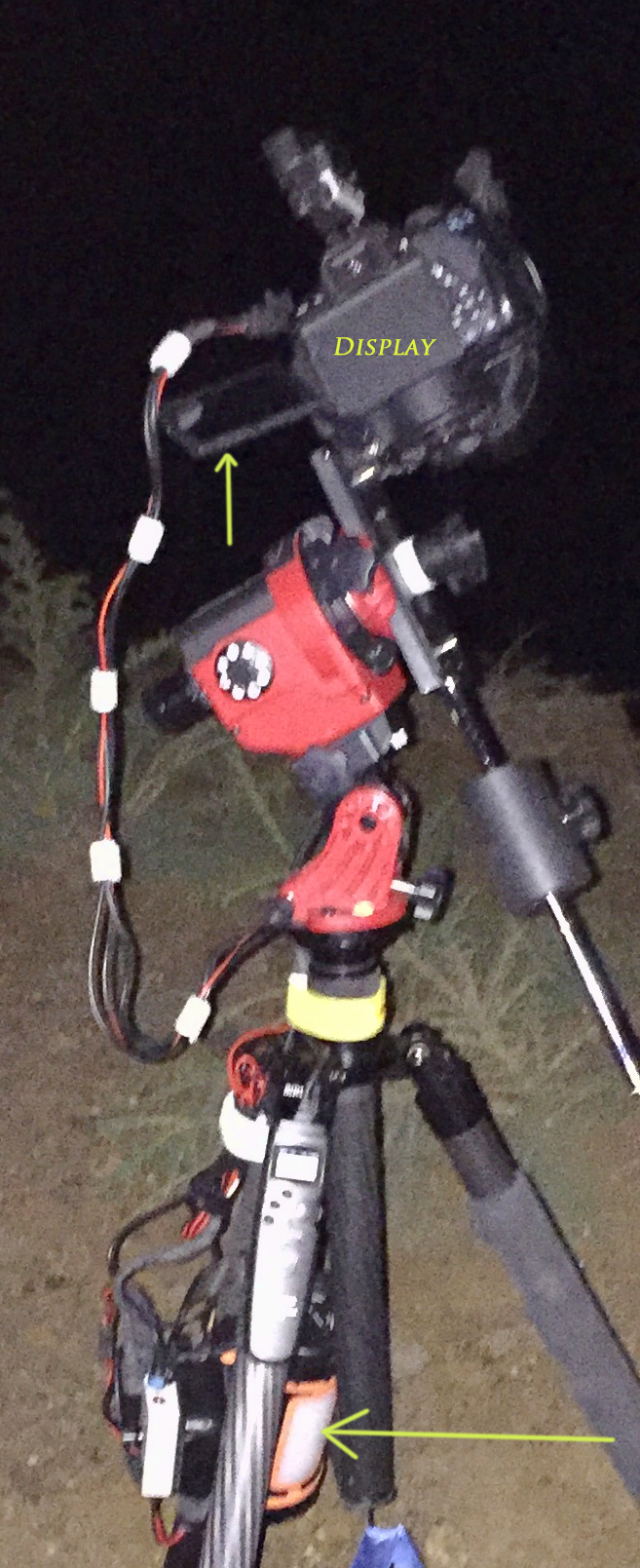 Bilden på din utrustning - jag lurar på vad det är jag ser. Gissar att det är kamerans display som är närmast betraktaren, men vad är det som sticker ut till vänster ? Har det med dina kylgrejor att göra ? Eller är det kylaren närmast och displayen till vänster ? Och den orange:a grejen nedtill, vad är det ? Det översta i bilden gissar jag är ett rödpunktsikte.