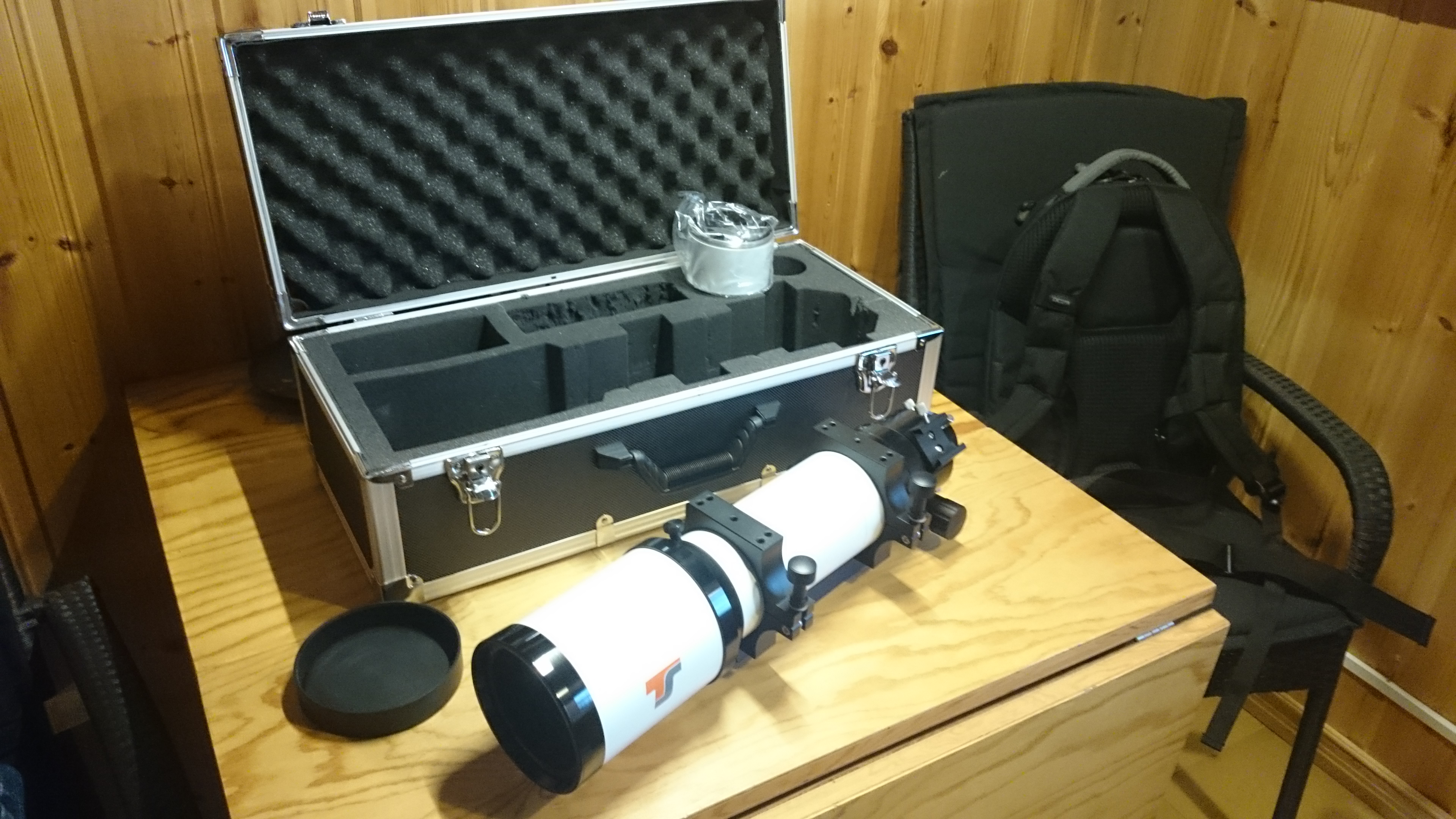 Kanske intresserad. Letar egentligen efter en 80 mm apo. En fråga: hur enkelt är det att resa med denna? Kan man ha väskan som handbaggage? Vad väger den allt?
