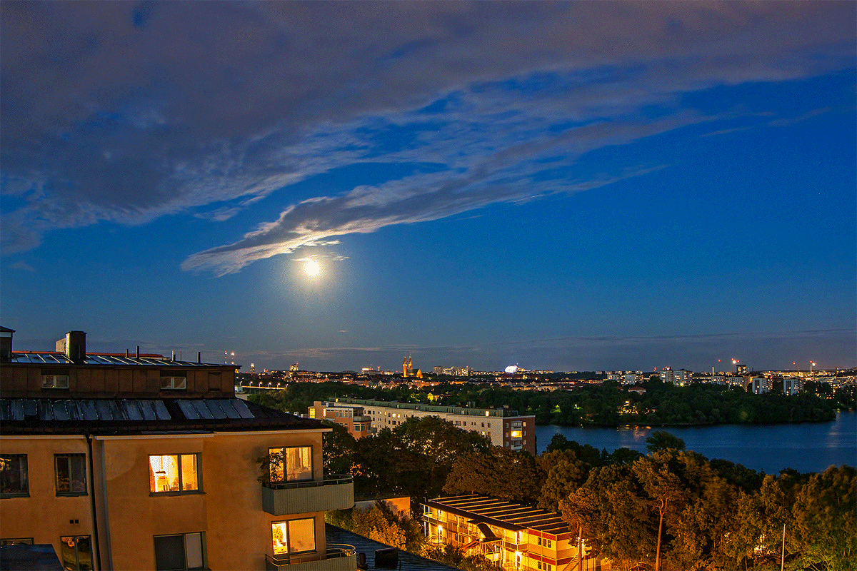 Trevligt! En riktigt fin månuppgång över Stockholm. Nu är det ju augustimånens tid :)