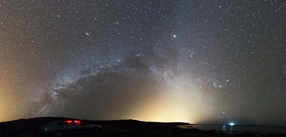OBS! att kameran är omoddad Canon 6D och det är så här tydligt som man kan se nebulositet från Fuerteventura.