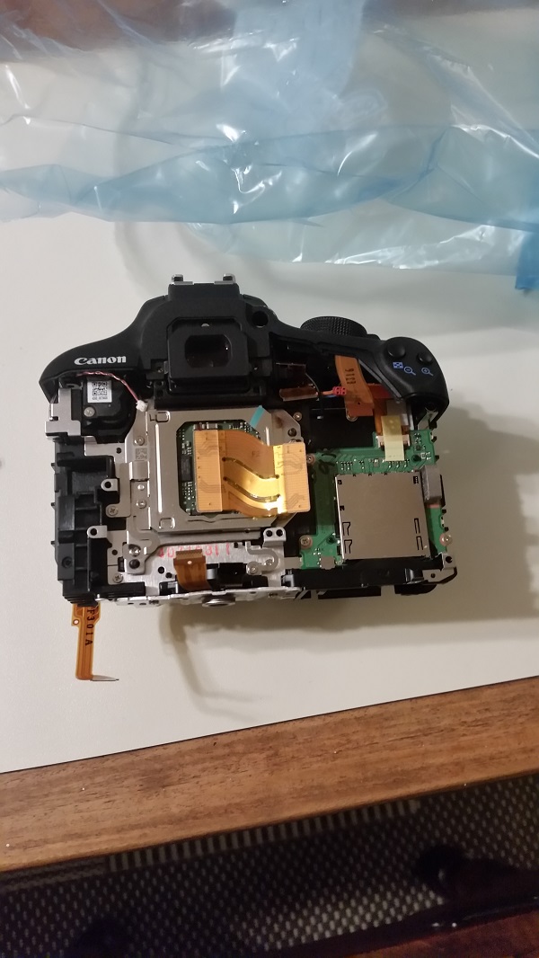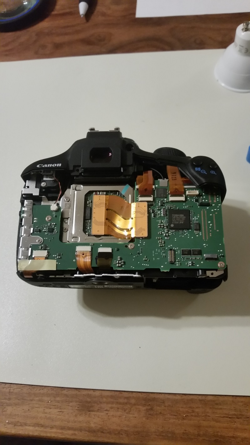 Men var jäkligt försiktig så man inte slinter för då kan det va kört om man träffar glaset till sensorn. Så var det dags att sätta ihop kameran men där fick man problem när man skulle få dit kretskortet.