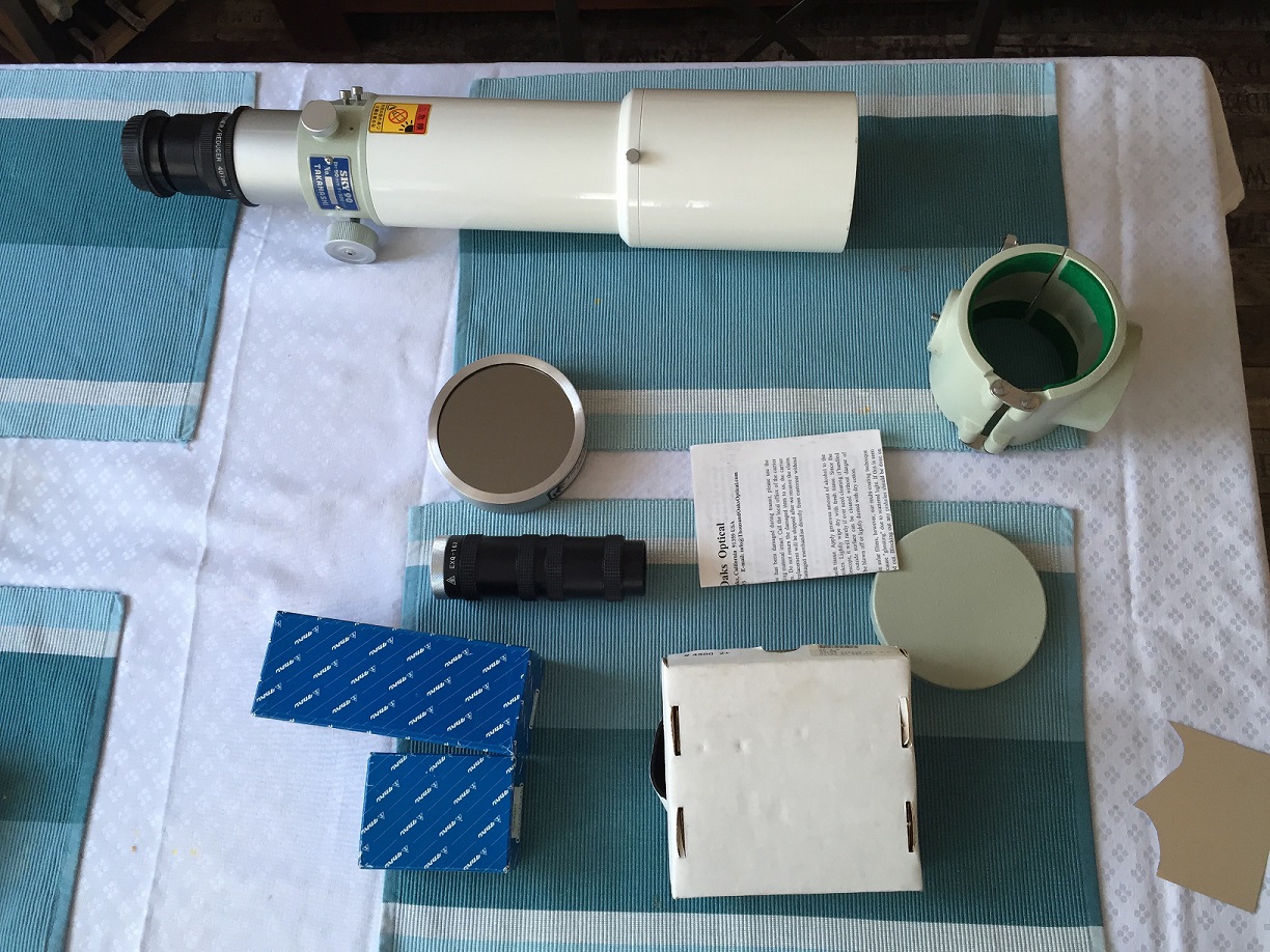 1. Takahashi Sky90 med tubring, extender 1.6x, reducer 0.7x samt T -OAKs solfiltret. Pris: 10.000:-