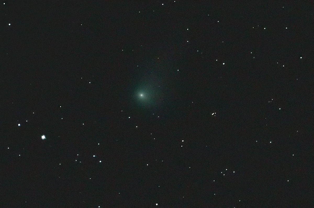 Då har jag försökt få ut lite mera av kometen genom att stacka 9 bilder tagna på mellan 1.600 och 6.400 Iso.