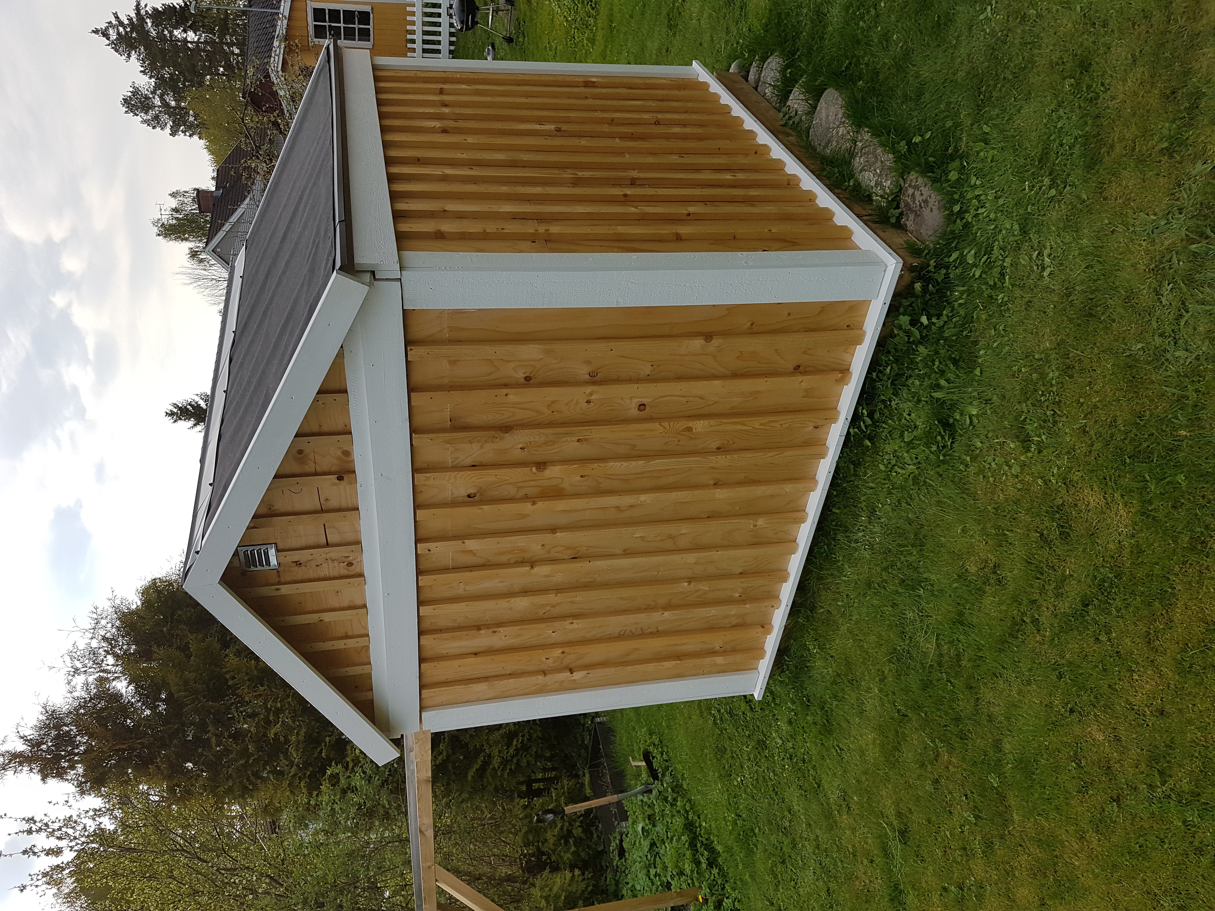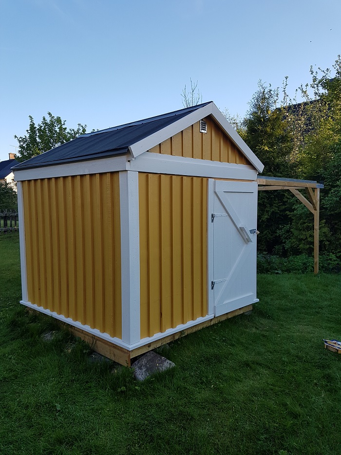 Nu börjar det se lite trevligare ut :) fast lite småsaker återstår som läkt till takdelen och sen fixa en stabilare grund till ställningen efter jag märkt att stolparna har sjunkit en hel del p.g.a att det blivit mjukare i backen nu när det blivit varmare.