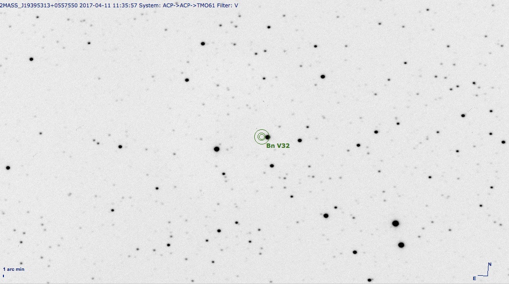 En detalj att tänka på om man söker i VSX är mellanslagets placering: det ska vara Bn V02, Bn V03, osv. Annars får man ingen träff där. Det är den akronym som IAU har bestämt för Bn V-stjärnorna.