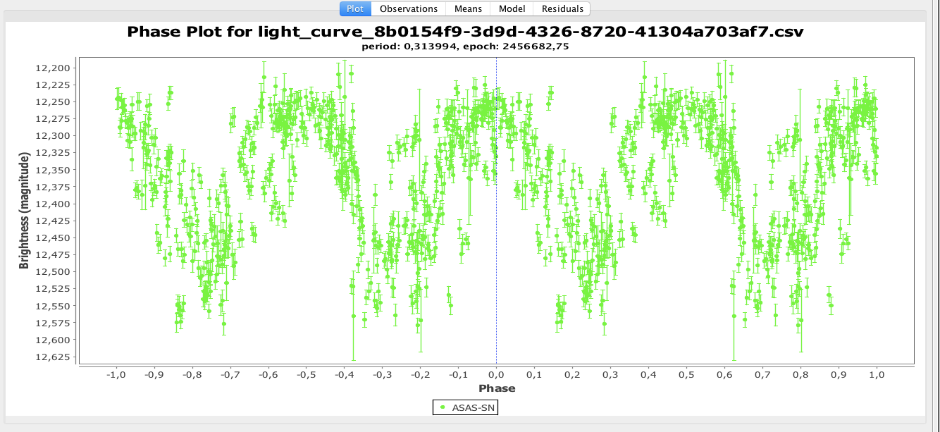 Fördelningen av mätningar i magnitudled tyder på att den tillbringar mest tid nära maximum och minimum, medan den rätt snabbt avverkar mittfasen.