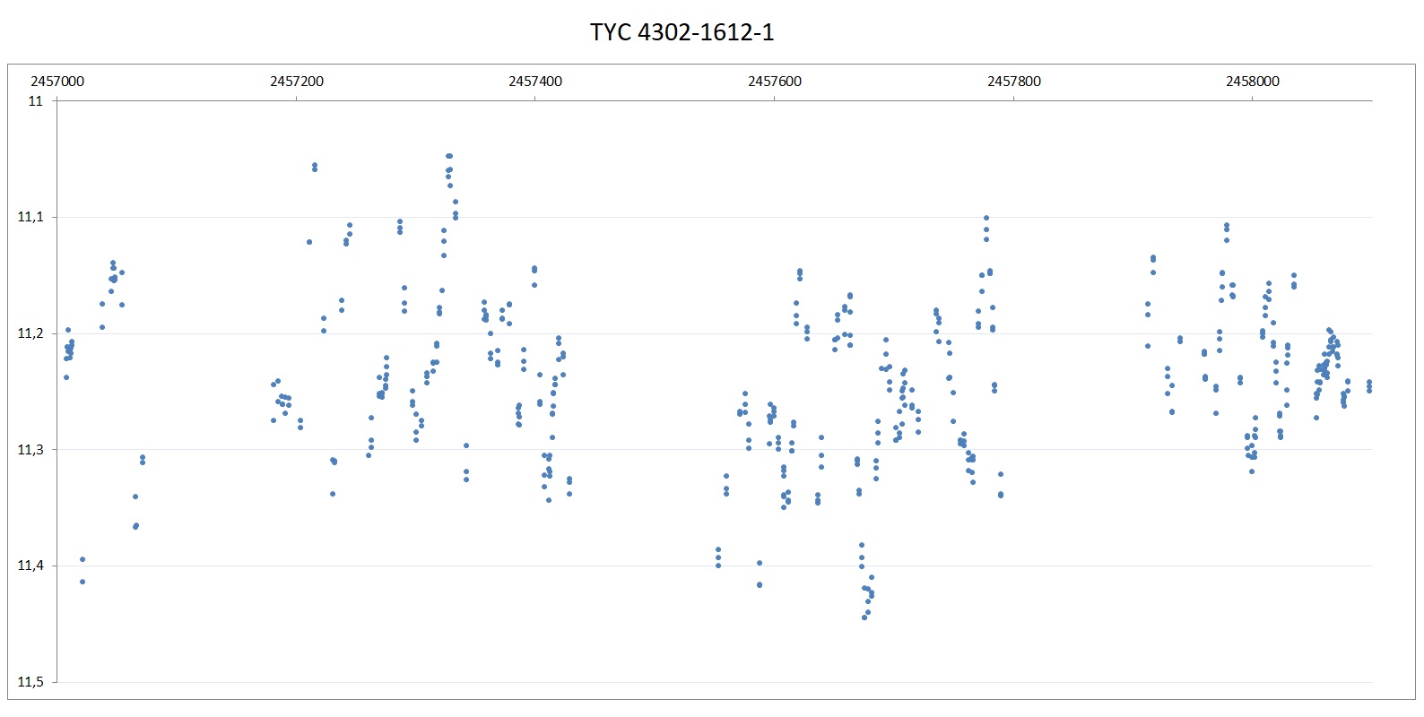 BEN258 är också variabel, och finns inte med som "pending". Kan nog bli svårt att hitta period för den. Se del av ljuskurvan nedan.