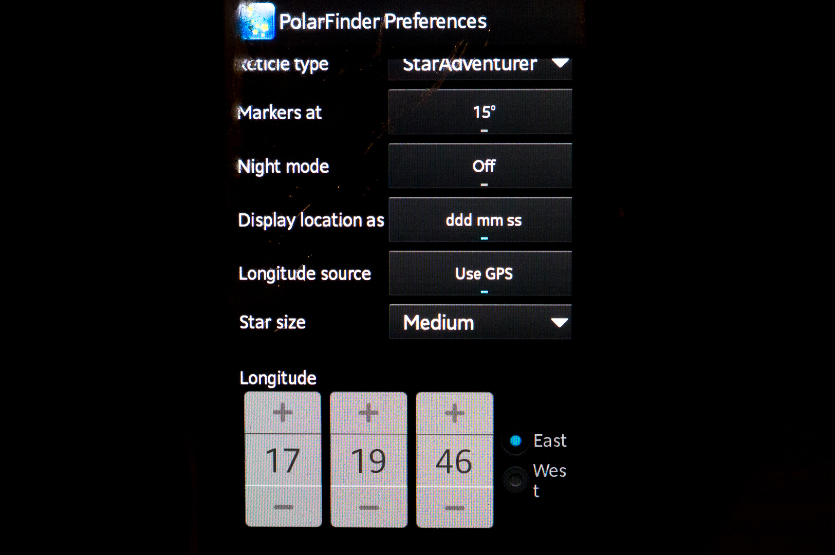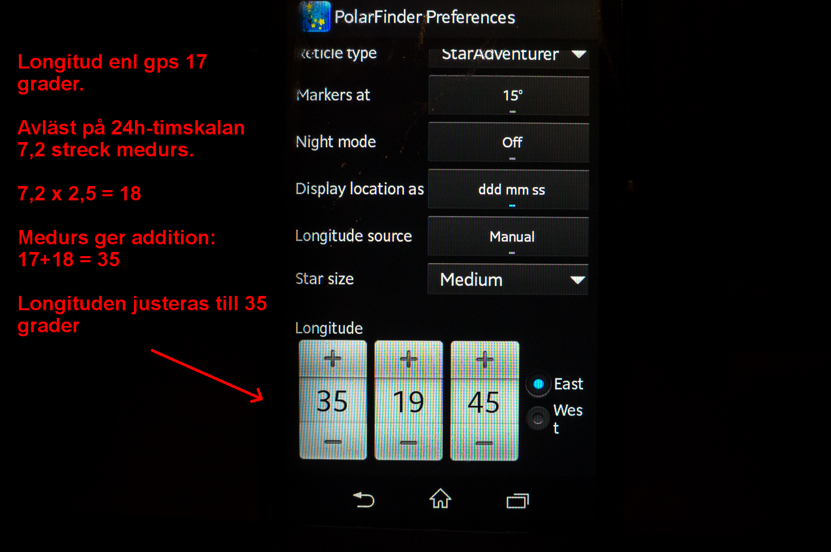...och till sist, gradtalet för hur mycket appen skall justeras går ju bestämma mha tex Stellarium genom azimuten för ett objekt vid en given tidpunkt.