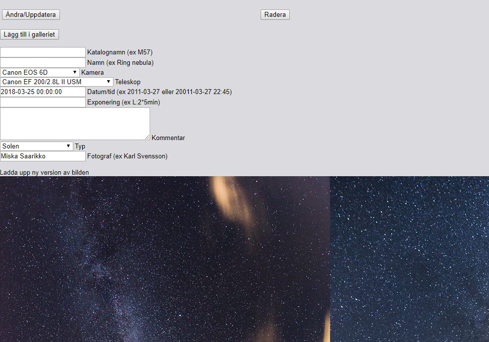 Gå in på bildgalleriet är en länk man kan trycka på på startsidan. Där står det administration av bilder i högra översta hörnet när man är inloggad. Trycker du där kommer du att kunna lägga upp bilder :)