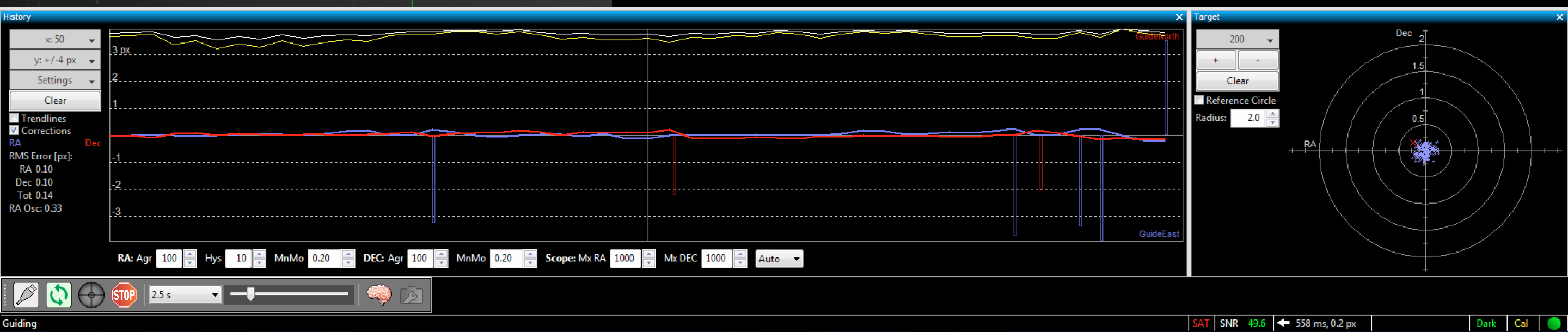 Fokallängden hade ramlat ur inställningarna i PHD2. Nu lirar det igen.