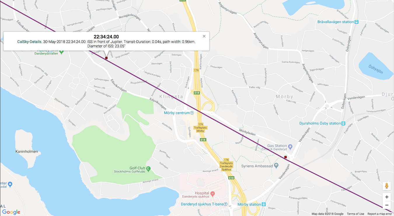 Peter R wrote: Nej, du har inte missat något för, till skillnad från mån-och solpassager är centrumlinjen väldigt lokal för Jupiter och sträckte sig enligt CalSky från Grillby till Ingarö. Dessutom observerade du ett varv senare.