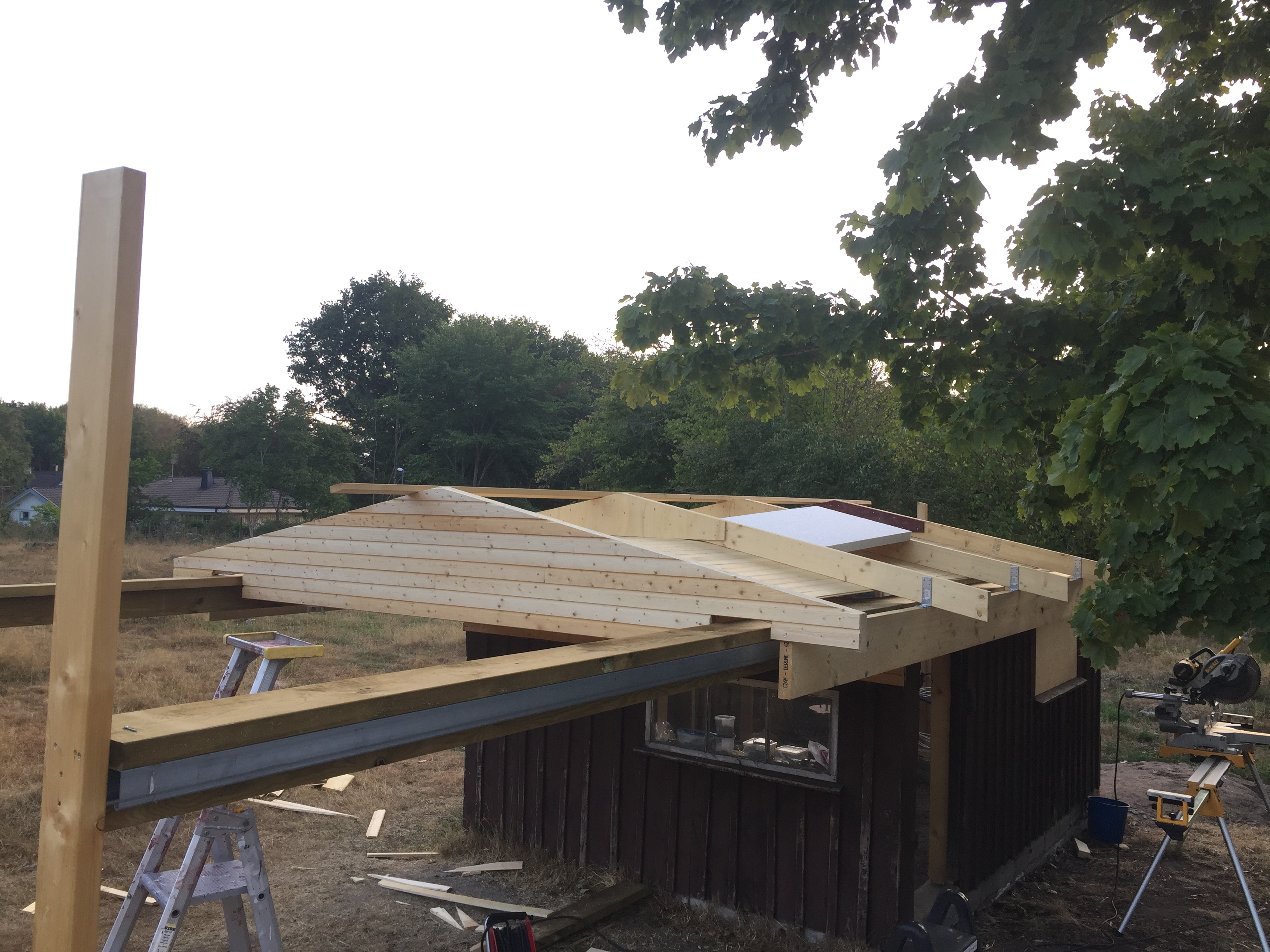 Nu är byggnationen i full gång av mitt observatorie ute i Onsala. Tänkte att jag kommer posta lite bilder här medans arbete fortskrider. Jag har bestämt mig för att använda mig att ett gammalt fårskjul/hönshus som finns på gården så halva byggnaden är redan klar, orginaltaket av eternit är nu demonterat och gropen för fundamentet är grävd. Så till helgen blir det förhoppningsvis gjutning.