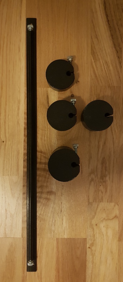 Komplett med motviktsskena och 3 vikter (1, 2 samt 3 lbs).