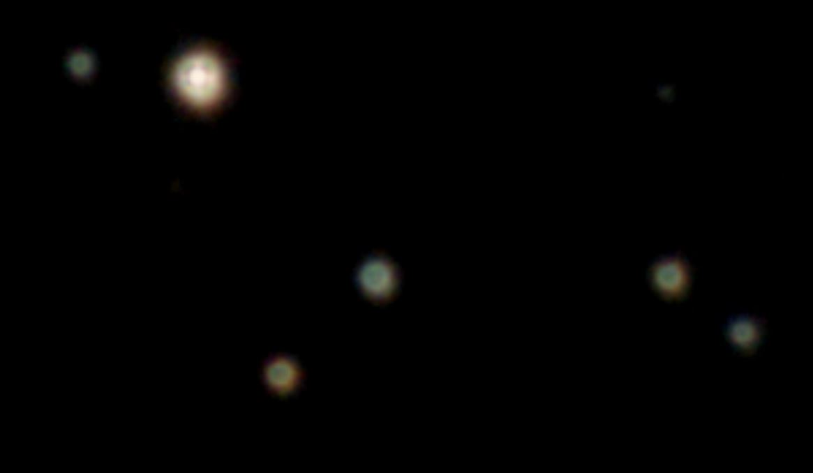 En croppad bild också då med typ samma utsnitt som den första med konstiga stjärnor. Detta är alltså den 10'e bilden jag tog efter fokuseringen så om fokuseraren glidit eller nått skulle ju det ha visat sig nu. Kanskeinte är 100 i fokus men man kan ju inte se ringarna..