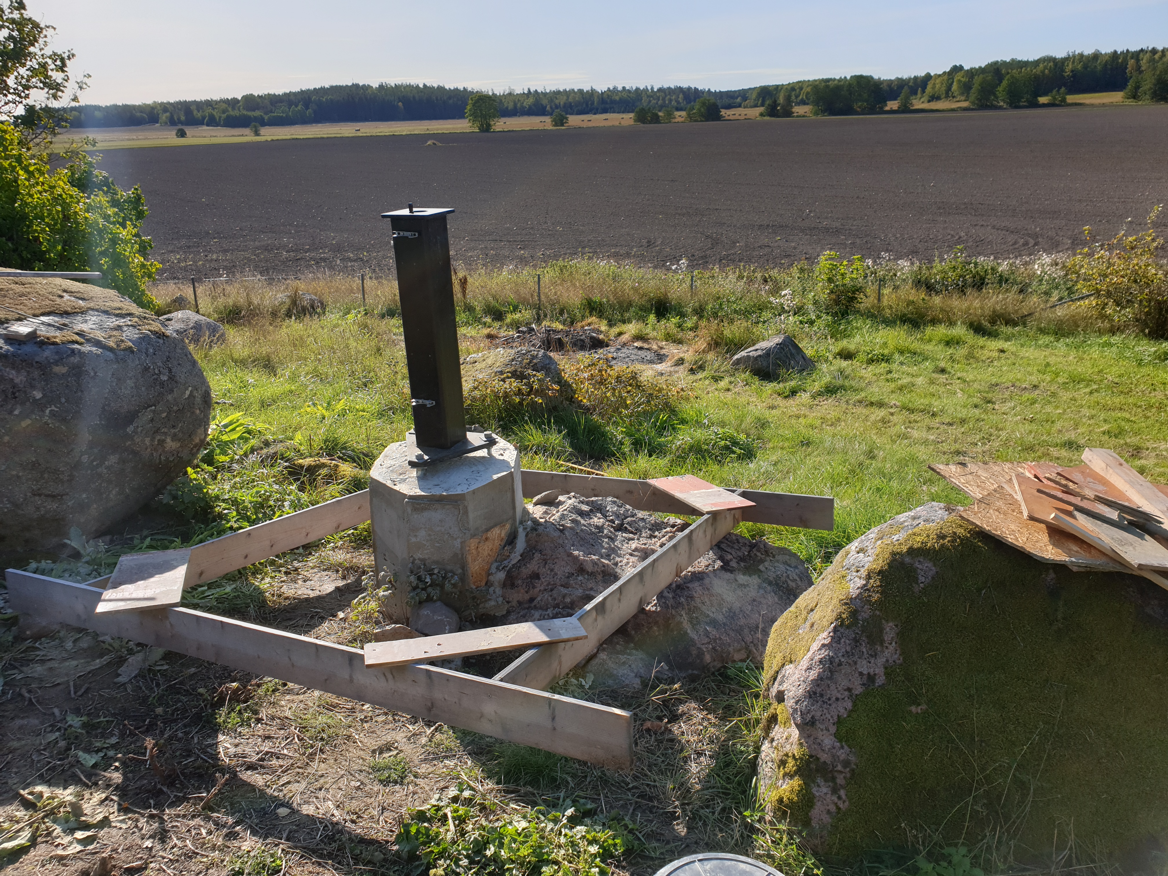 Min stålpir och mitt betongfundament ser ut så här. Har kört med den i 7 år och fotat i stort sett samtliga planetbilder som jag tagit inklusive den jag har som avatarbild. Min stålpir är ca metern hög, 120x120 mm stålrör med 10 mm gods. Med en 20 mm tjock plåt som bottenplatta. Skulle tro att den väger 80-90 kg.