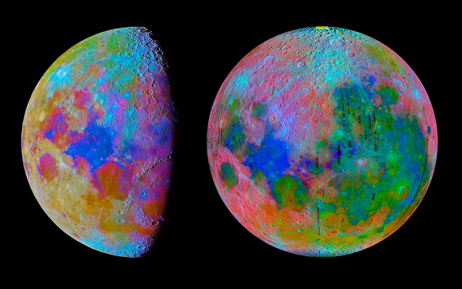 Jag tycker det är läckert med färgbilder av månen där man ser att lavafälten i månhaven har olika färgnyanser.