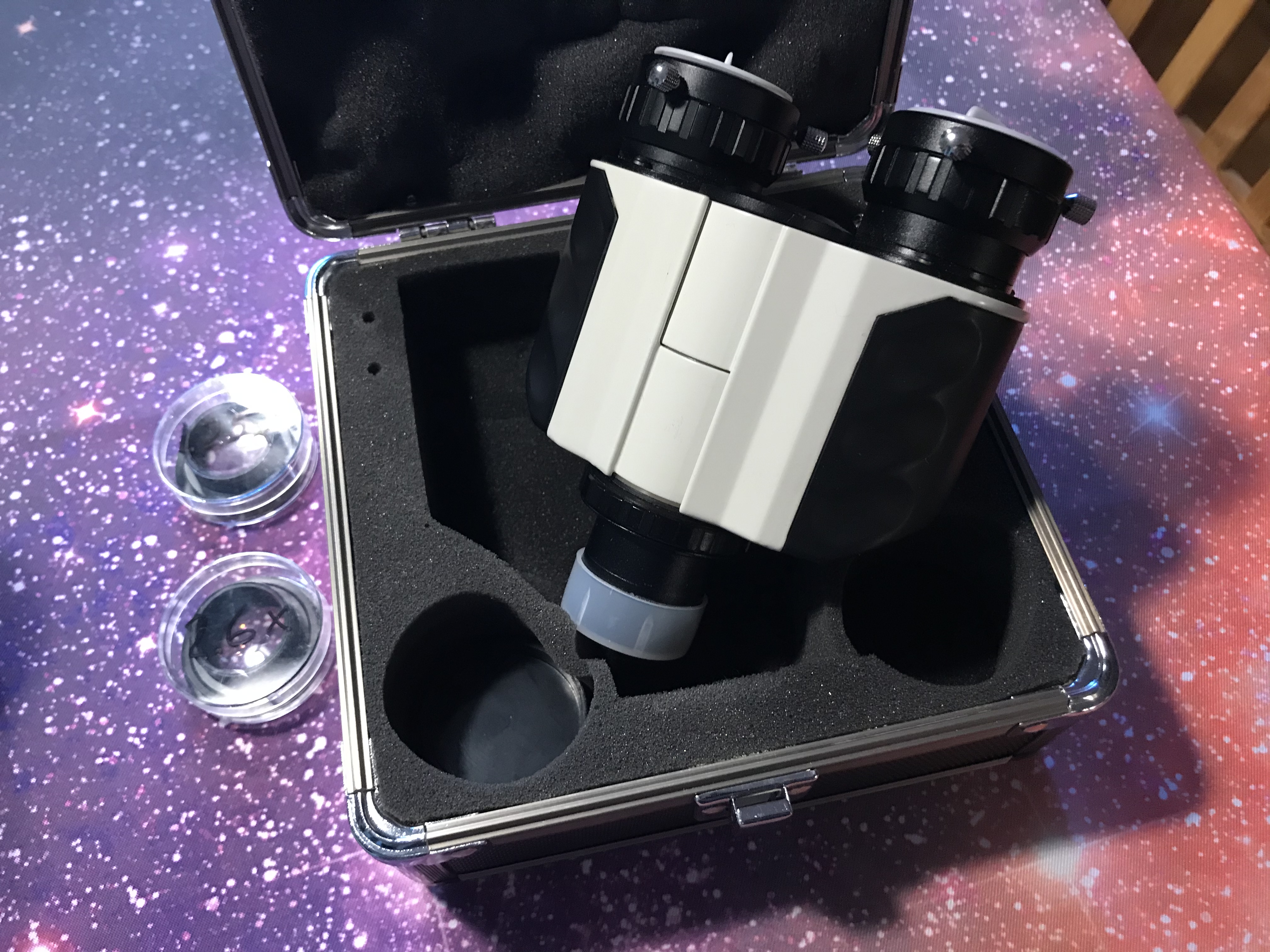 Baader MaxBright 1.25" Binoviewer för 1.25 tum. Använd 2st matchande okular och njut av möjligheten att titta med båda ögonen genom ett teleskop. En Binoviewer bygger mycket (110mm) vilket kräver gott om fokusavstånd på ett teleskop. Det följer med 2st Baader Glaspathcorrectors (GWK 1.25x resp GWK 2.6x) för användning på olika teleskop. Glaspathcorrectorerna har likheter med en barlowlins samt gör att du kan nå fokus på teleskop där fokusavståndet är kort tex Newtonteleskop.