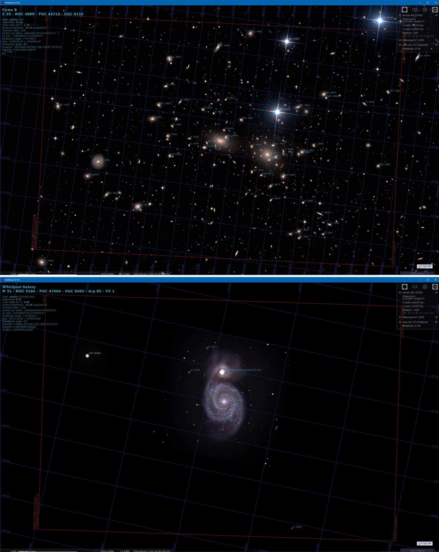 Det är inte något galax-tätt område på himlen här, iaf inte om man jämför med det "värsta" jag sett, Coma Berenikes. Jag drog på DSO Labels and Hints i Stellarium och då ser det ut så här på resp område: