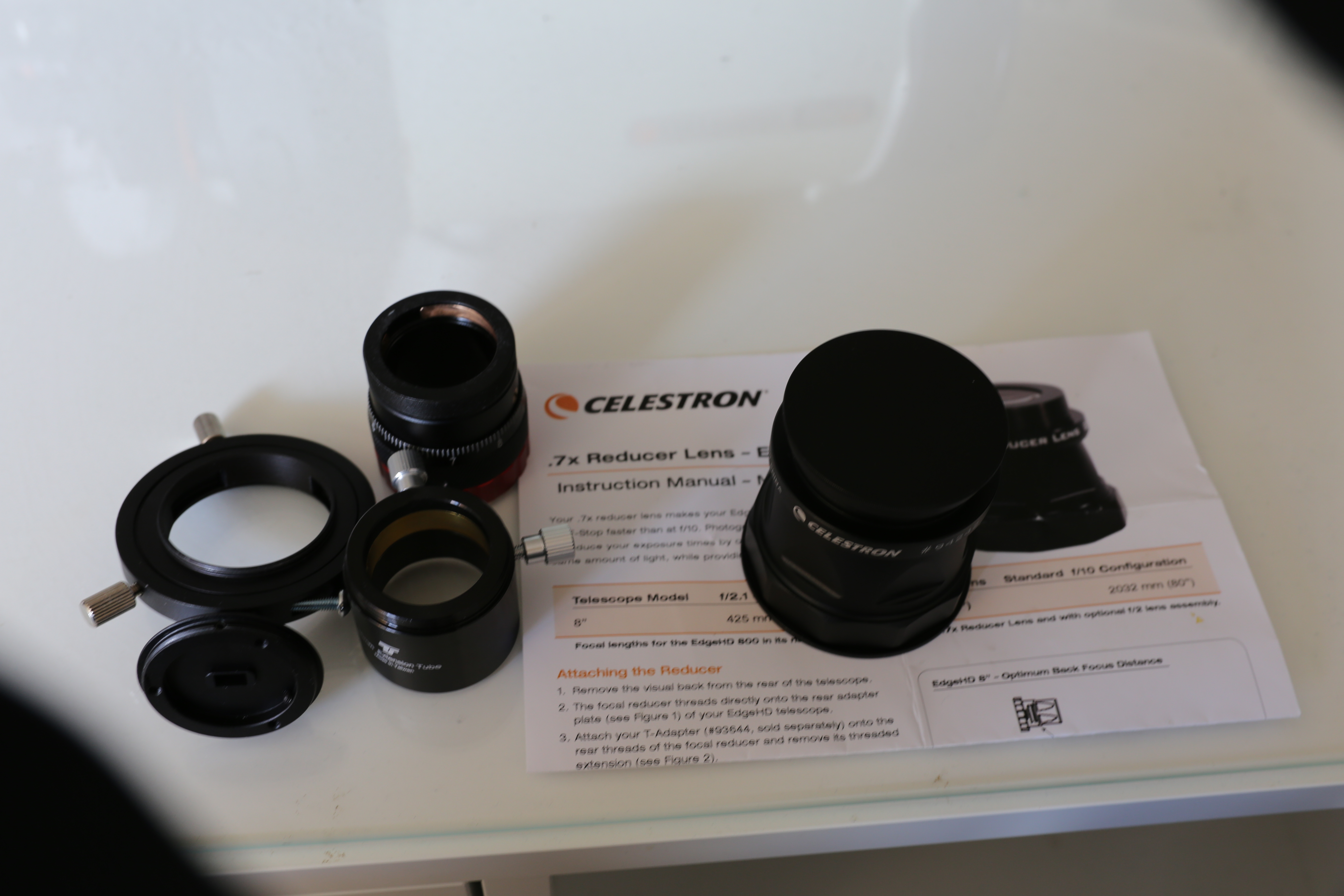 M48 adapter medföljer till OAG samt 35 mm förlängare med T2 gänga. Reducer och OAG inköpt nytt hösten 2019, fokuseraren köpt begagnad via detta forum.