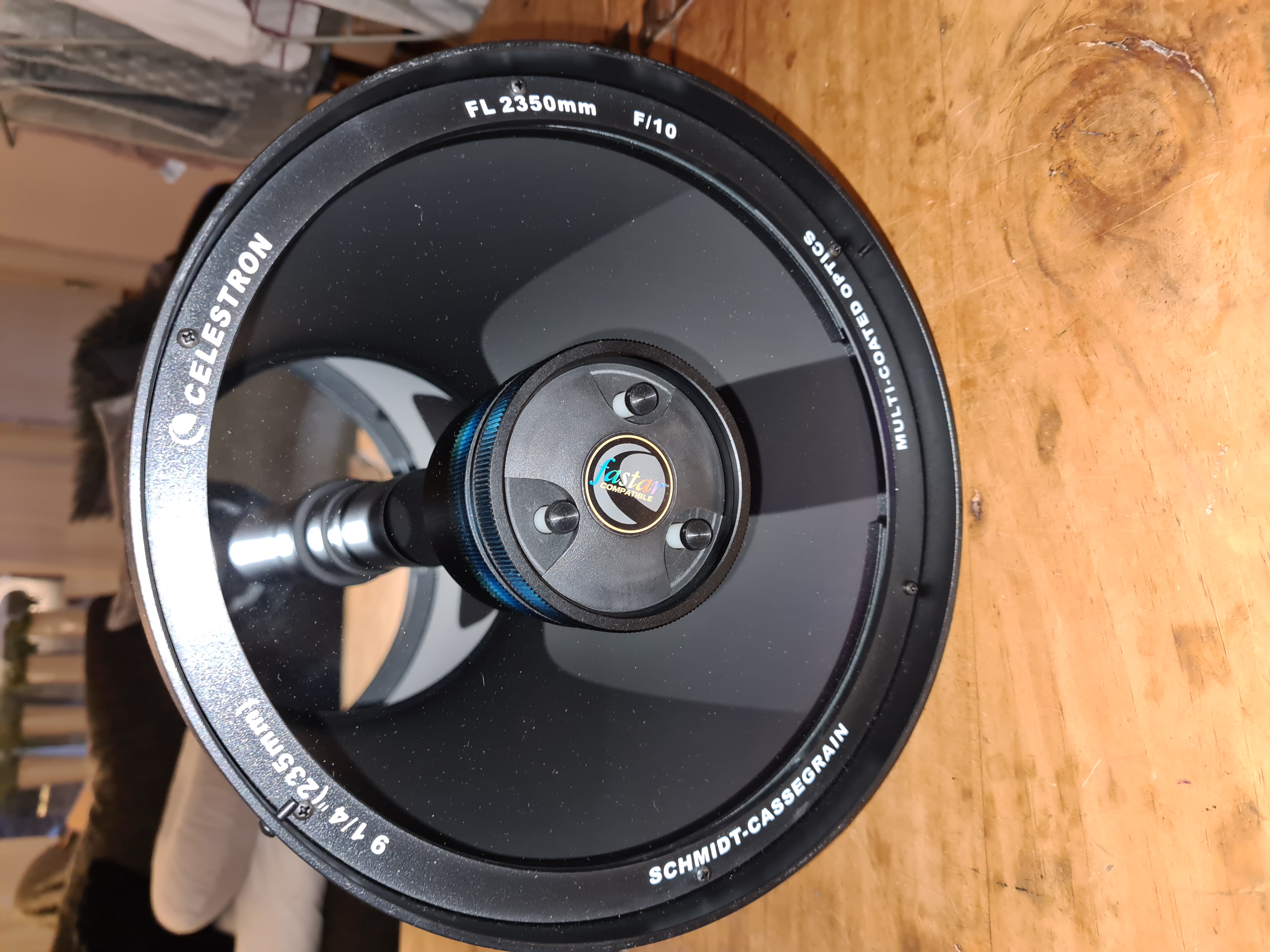 Hej, jag har nu bestämt mig för att sälja min C9.25-tub. Den förtjänar att användas mer än vad jag hinner med. Kollimeringsskruvarna är utbytta till Bob knobs, vilket gör att man kan justera för hand istället för med skruvmejsel.