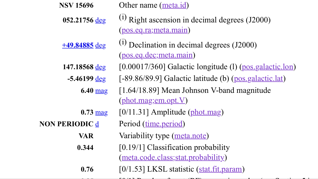 Nu har jag tittat närmare på ASAS-SN-data. Där ger en kamera stabila g-magnituder kring 6.0 (även 11 augusti) medan en annan kamera ger g-magnituder mellan 8 och 9. I det senare kamerafallet handlar det nog om att stjärnan är för ljus för pålitliga mätningar. Se tredje sifferkolumnen i skärmklippet från ASAS-SN nedan. Blandningen av olika kamerors resultat kan vara orsaken till den stora amplitud som ges i katalogen från Jayasinghe et al.