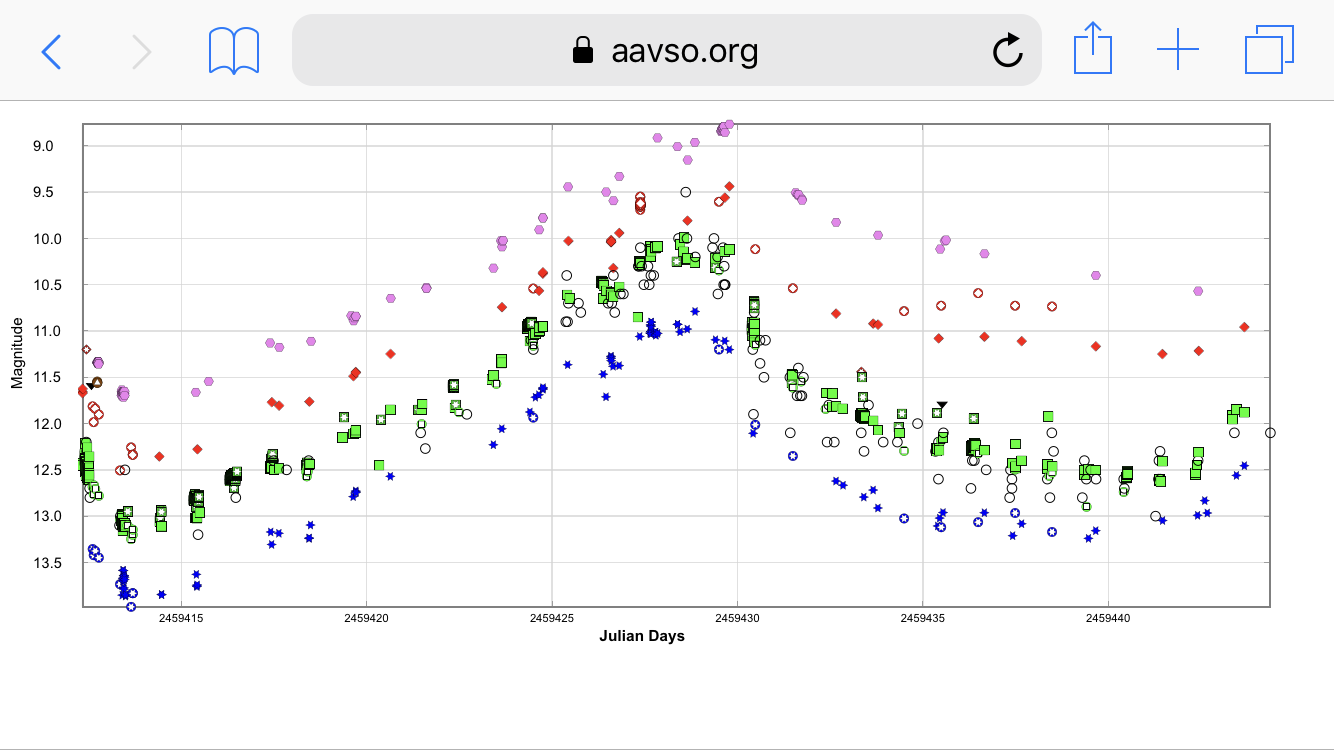 Jajamen, du var först på bollen i AAVSO, och troligen först även utom-AAVSO när det gäller tidsserie. Det är bara att gratulera!