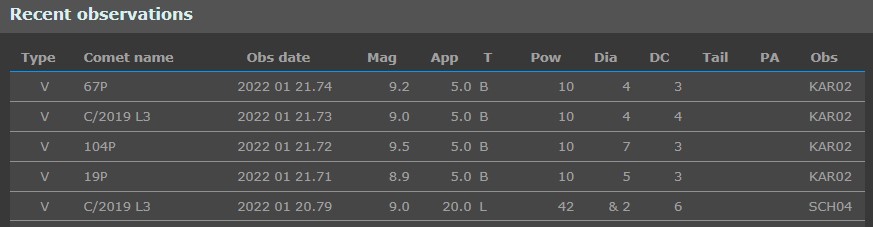 Comet Observation Database | https://cobs.si/