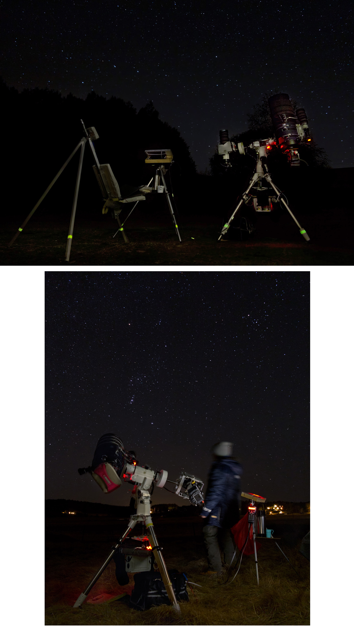 Jag vill kolla intresset för en komplett astrofoto-rigg som är optimerad för drift "ute i fält", dvs väldigt portabel för biltransport samt helt oberoende av pc (det räcker med en surfplatta) om man använder dslr. Med ett 55 Ah AGM-batteri har jag kört upp till 10 timmar, med daggvärmare och allt i 10 minusgrader.