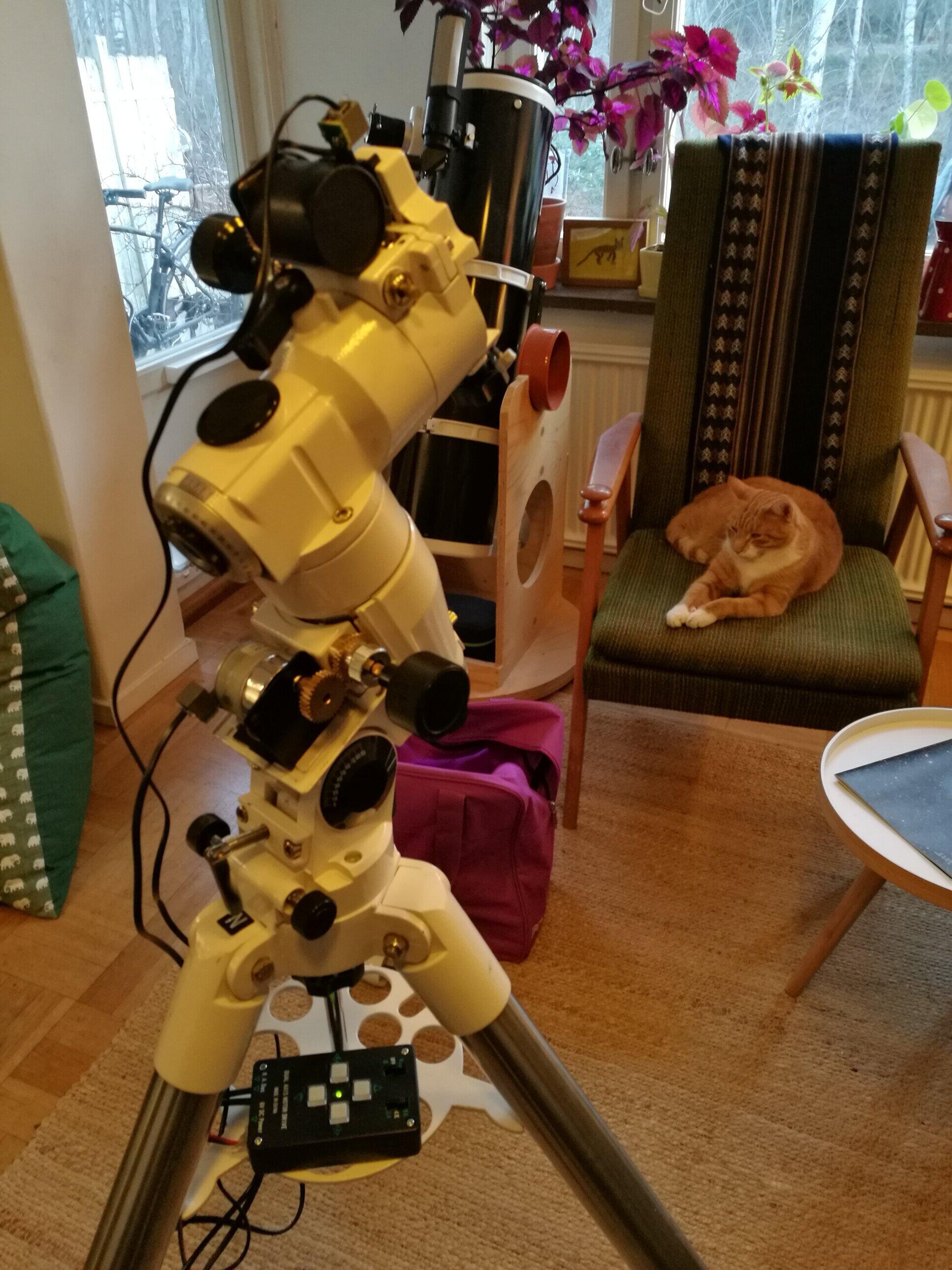 År 2015 köpte jag denna montering och sina motorer till mitt Skywatcher 200 PDS. Jag har använt den flitigt och är mycket nöjd men jag har för tre år sedan gått över till en dobson montering för teleskopet. Eftersom jag inte längre använder denna montering och sina tillbehör så säljer jag den.