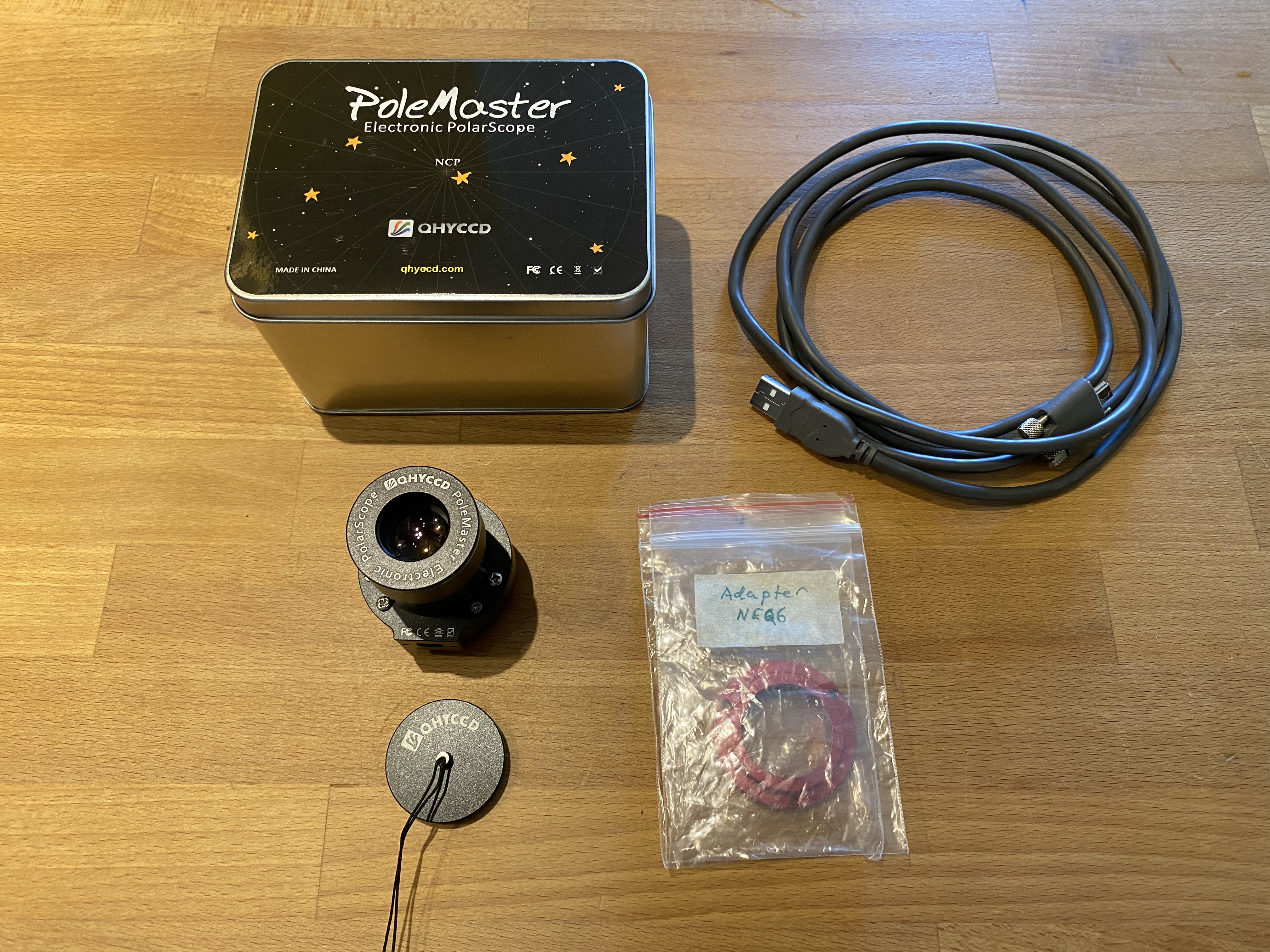 QCam Polemaster kamera för enkel polinställning. Använd ca 5 ggr och i mycket bra skick. Det följer med 2st adaptrar för monteringarna NEQ6 resp AZ-EQ5.
