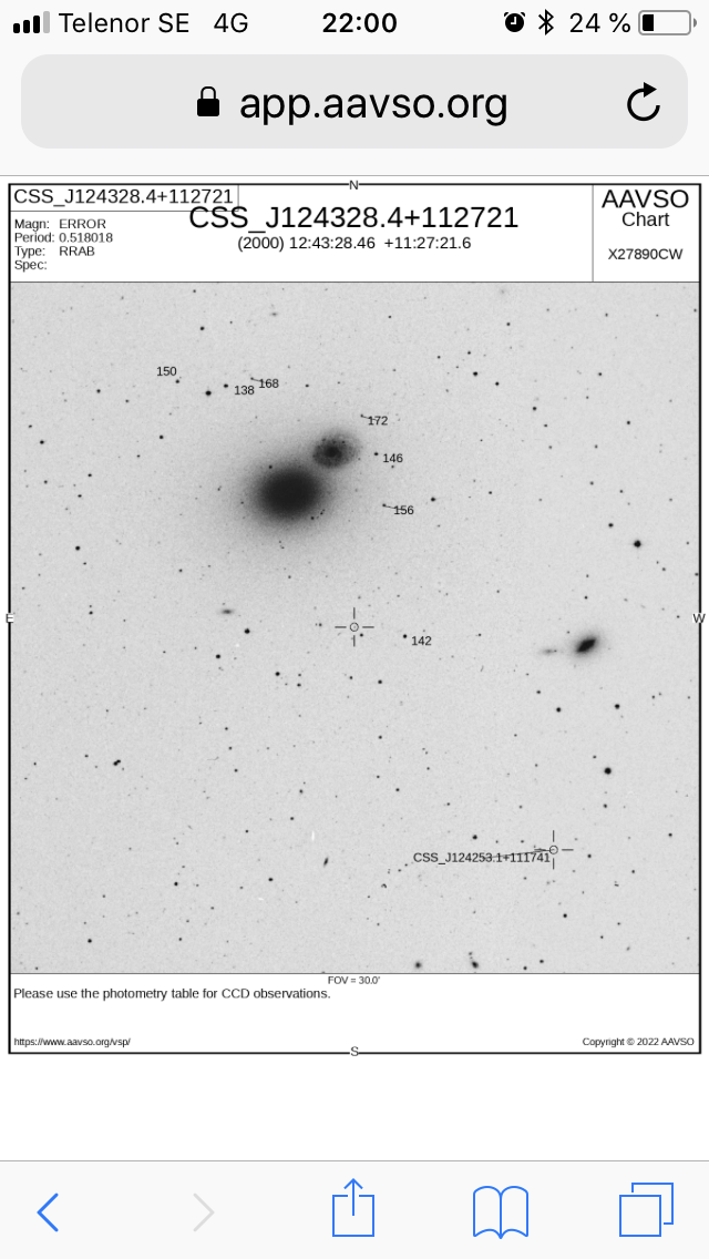 Det är möjligen tack vare CSS-stjärnan som det finns en sekvens trots att SN2022hrs saknas i VSX? Eller troligen inte. Jfr-stjärnorna har i så fall en egendomlig spridning på kartan. Eller om det eventuellt finns sekvenser kring många galaxer just med tanke på supernovor? Har aldrig tänkt på det.