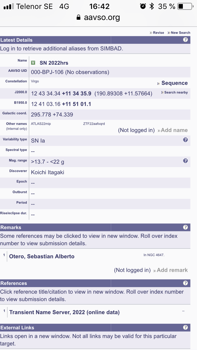 Nu finns SN2022hrs med i VSX.