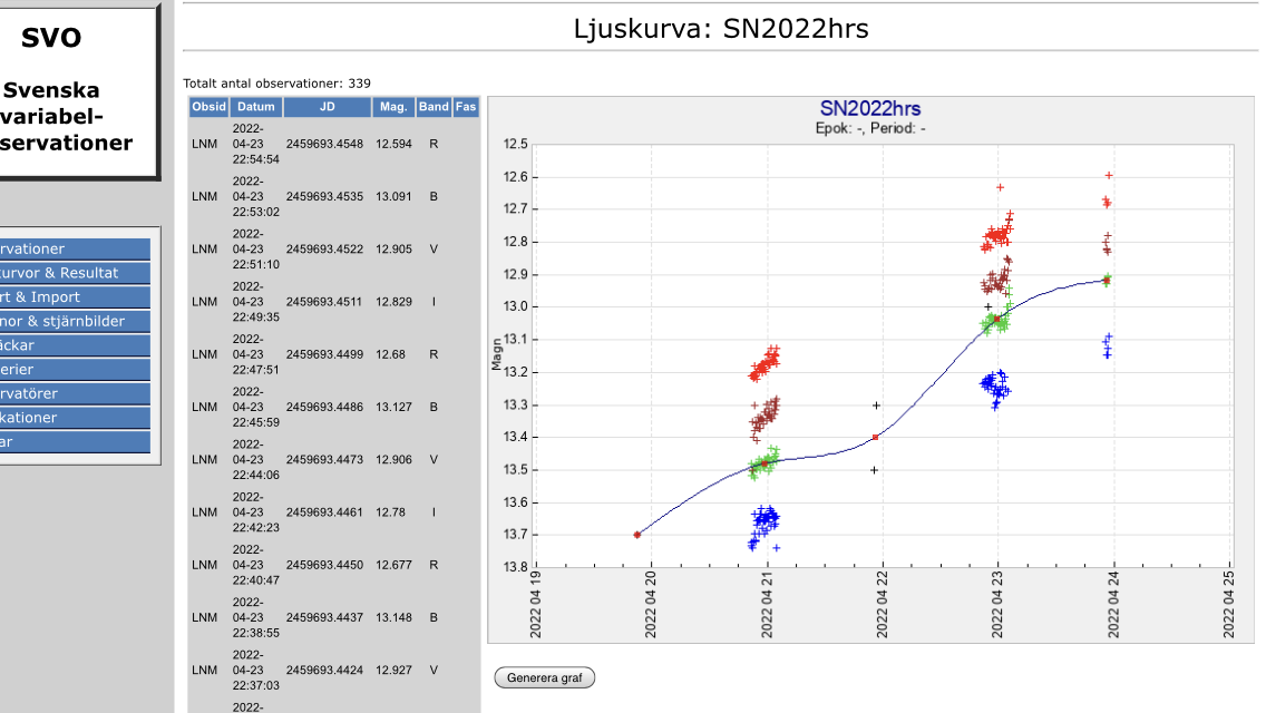 SN2022hrs fortsätter att ljusna! Se SVO-diagram nedan.
