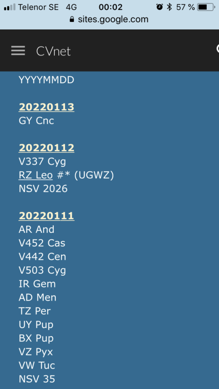 Re: Aktuella kataklysmiska variabler