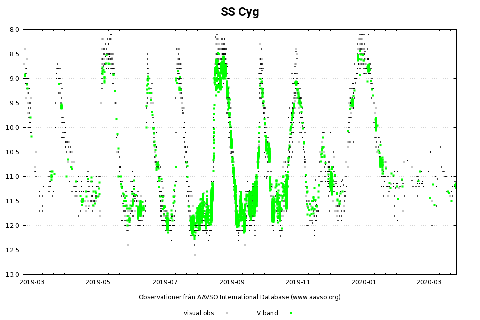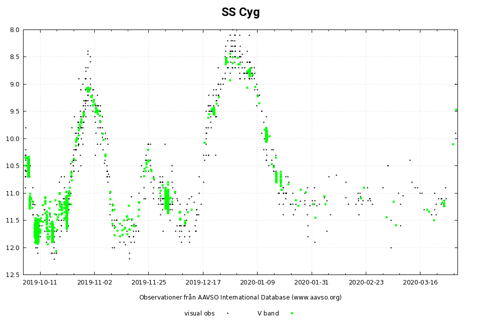 SS Cyg har nu (31 mars) hamnat i utbrott.