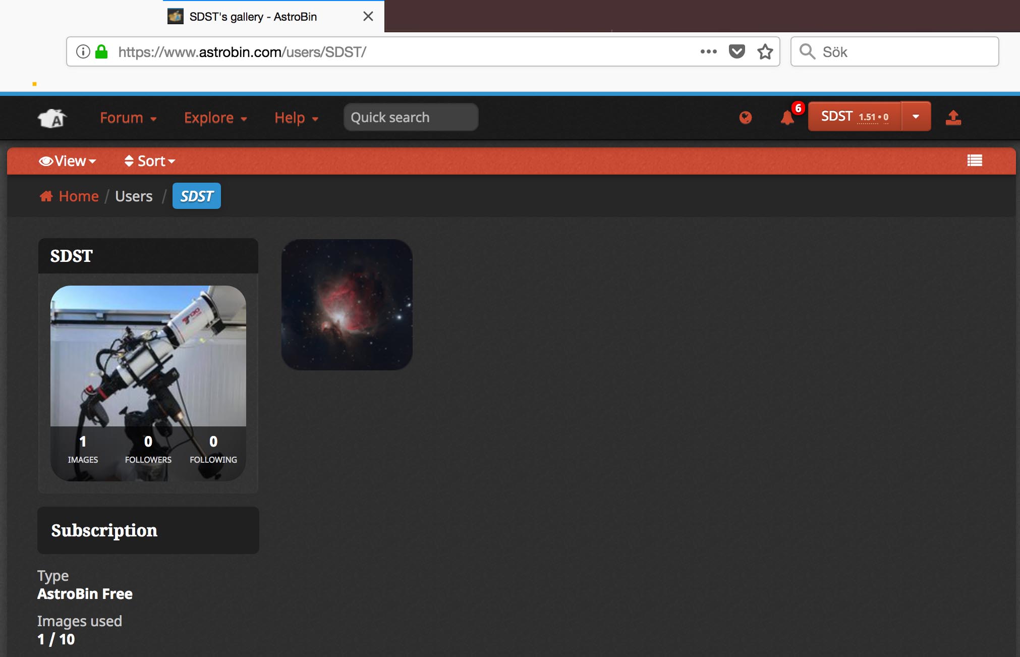 Nu finns SDST även på Astrobin. Här kommer vi publicera tekniska detaljer runt bilderna vi tar.