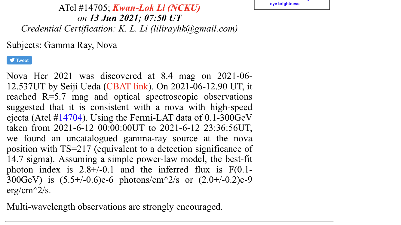 AAVSO har nu, i likhet med SVO, som primärnamn N Her 2021. Det slutliga namnet kommer förmodligen att offentliggöras inom ett par dygn.