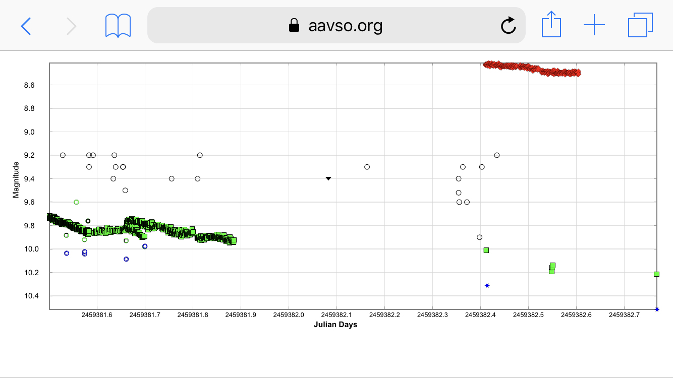 Ser förresten att min obs 7.2 är den ljusaste av novan i AAVSOs arkiv, lite roligt faktiskt. Alcocks obs kom inte dit.