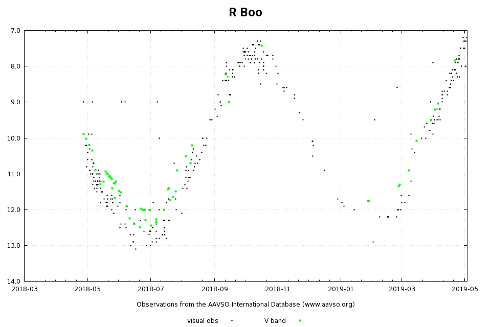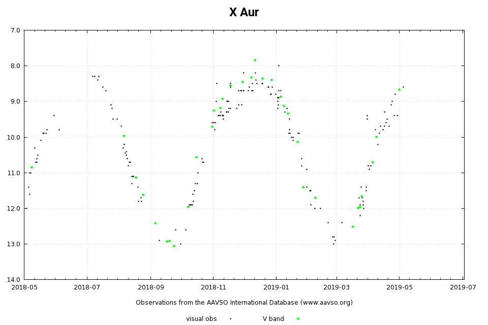Det stämmer. Det finns flera intressanta långperiodiska variabler nära maximum just nu. Förutom de du nämner så kan man också pricka av U Vir, X Aur, X Cam och R Boo. Jag var speciellt intresserad av X Cam. Tyvärr går vi nu mot säsongens slut.