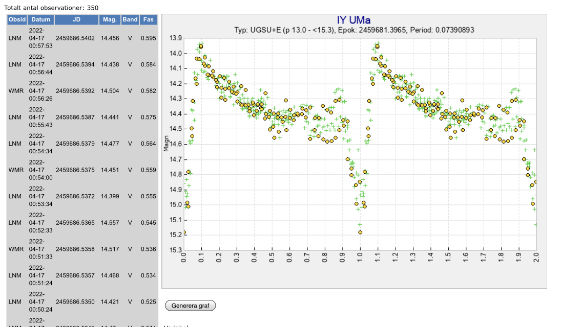 Den gångna nattens (16-17 april) uppförande hos IY UMa fångades i detalj även av Magnus. De båda serierna är i synnerligen god samklang.