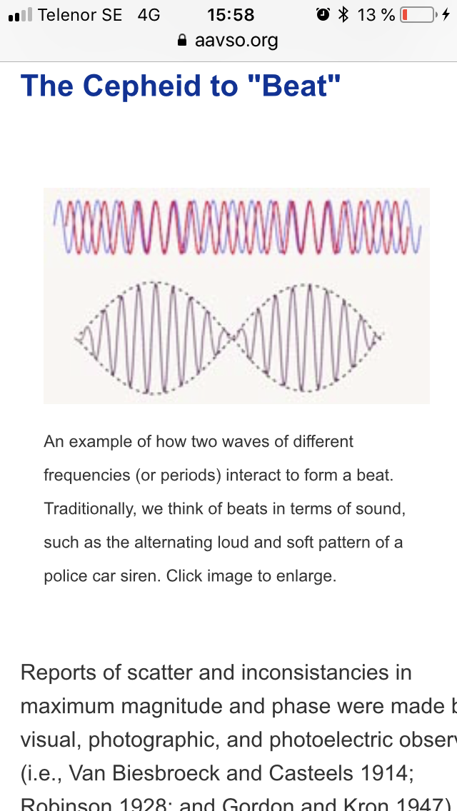 I klippet nedan är alltså ”beat period” den period som är ”mycket längre” än omloppstiden, inte som är lika med omloppstiden (texten är tvetydigt formulerad!). Puh! Nu har jag editerat min text ett par gånger eftersom jag själv missuppfattade klippet och först trodde att beat period definierades på annat sätt för dvärgnovor än för pulserande stjärnor ...