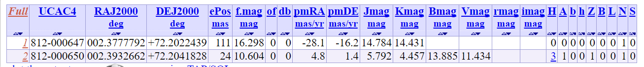 När jag tittar i VixieR så ser jag ingen identifier annat än koordinater för stjärnan. Hur hittade ni era UCAC4 identifiers?