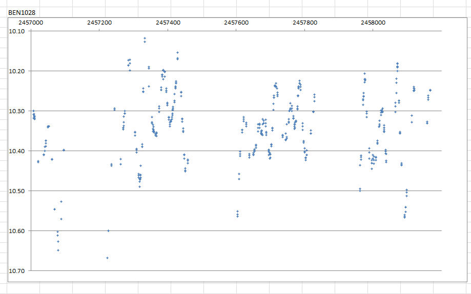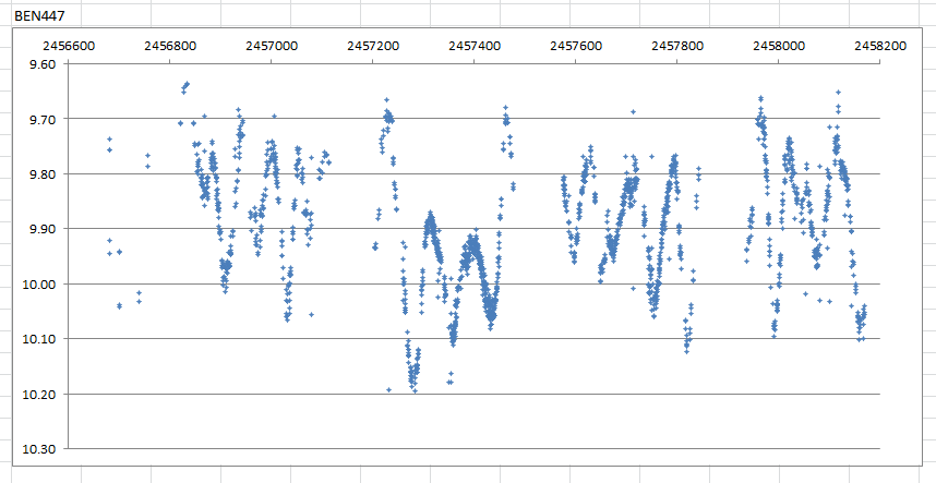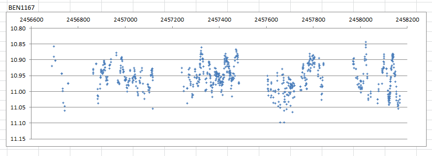 BEN1167 är ytterligare en halvregelbunden, tidigare okänd variabel. Se ljuskurva nedan.