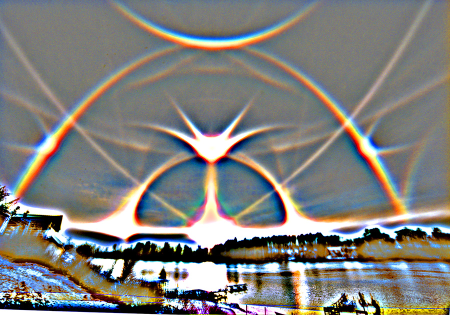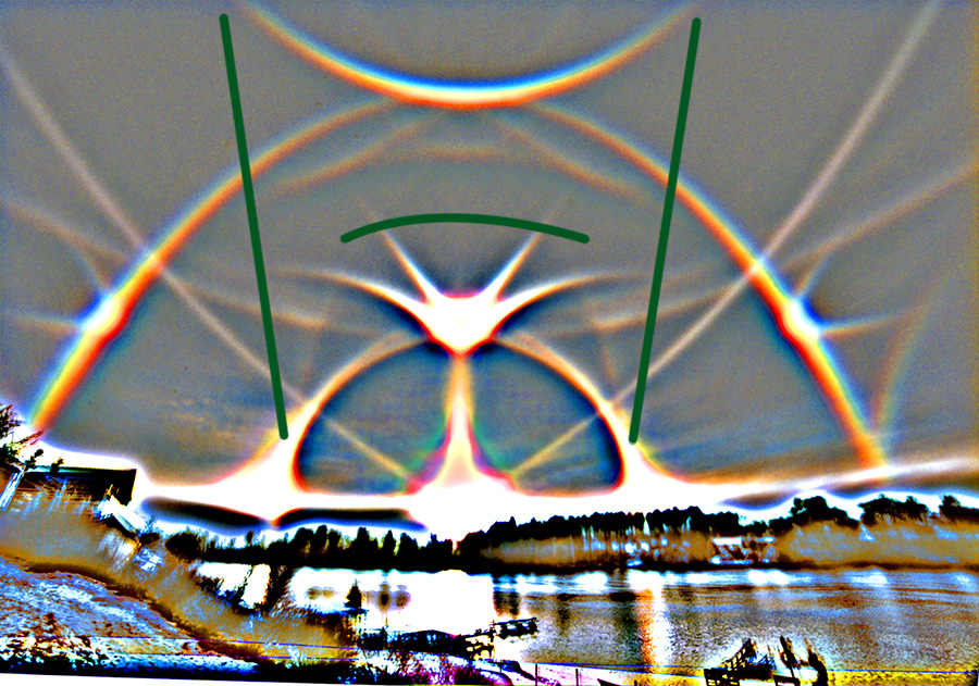 Angående Infralateral Arcs (16) så ligger den ju uppenbart ovanför Parhelic Circle (5) medan Wikipedia påstår att den alltid ligger under.