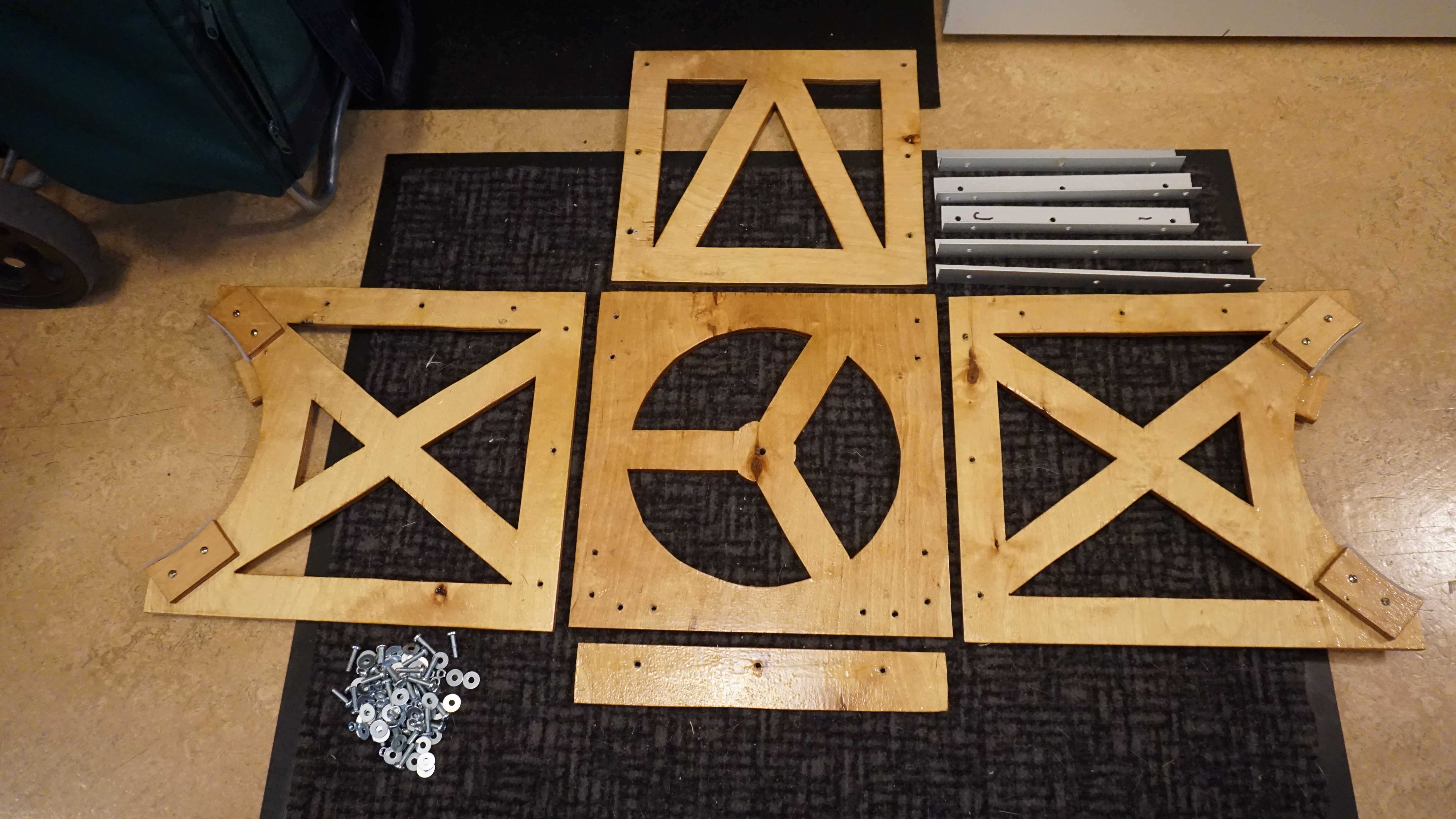 Rockerboxen skruvar jag isär i sina fem plywooddelar. Huruvida jag skruvar loss alla aluminiumprofiler vet jag inte. Kanske låter jag dem sitta kvar "på ena sidan" så att säga om det inte känns dumt pga hårda kanter och risk för skador mm. Då är det kanske bättre att ta loss dem och bunta ihop dem.