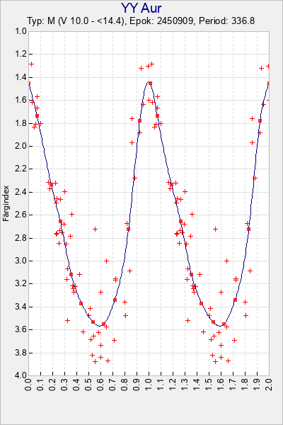 Min spontana tanke är att en sådan artikel kunde baseras på SVO-diagram. Sådana går snabbt att framställa. De kunde bestå dels av ett fasdiagram (V), dels ett färgindexdiagram. Färgindexet kan genomgående vara V-R, där har vi bra data. Jag ger exempel nedan där jag valt den första stjärnan i serien, YY Aur.