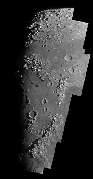 Kommentar: Nu har jag kommit en bit på min månmosaik på terminatorn från Apeninerna till månens nordpol.